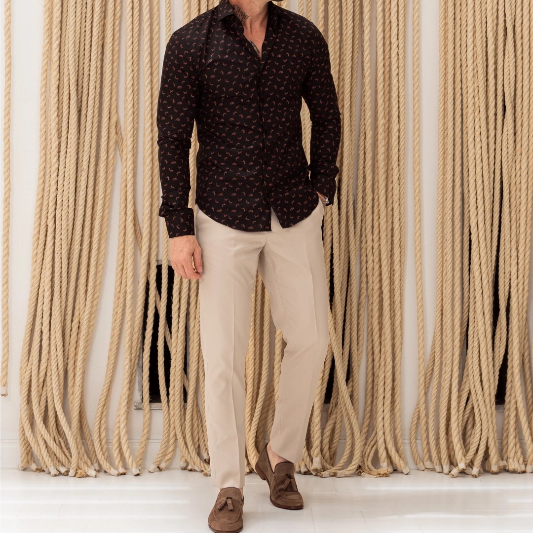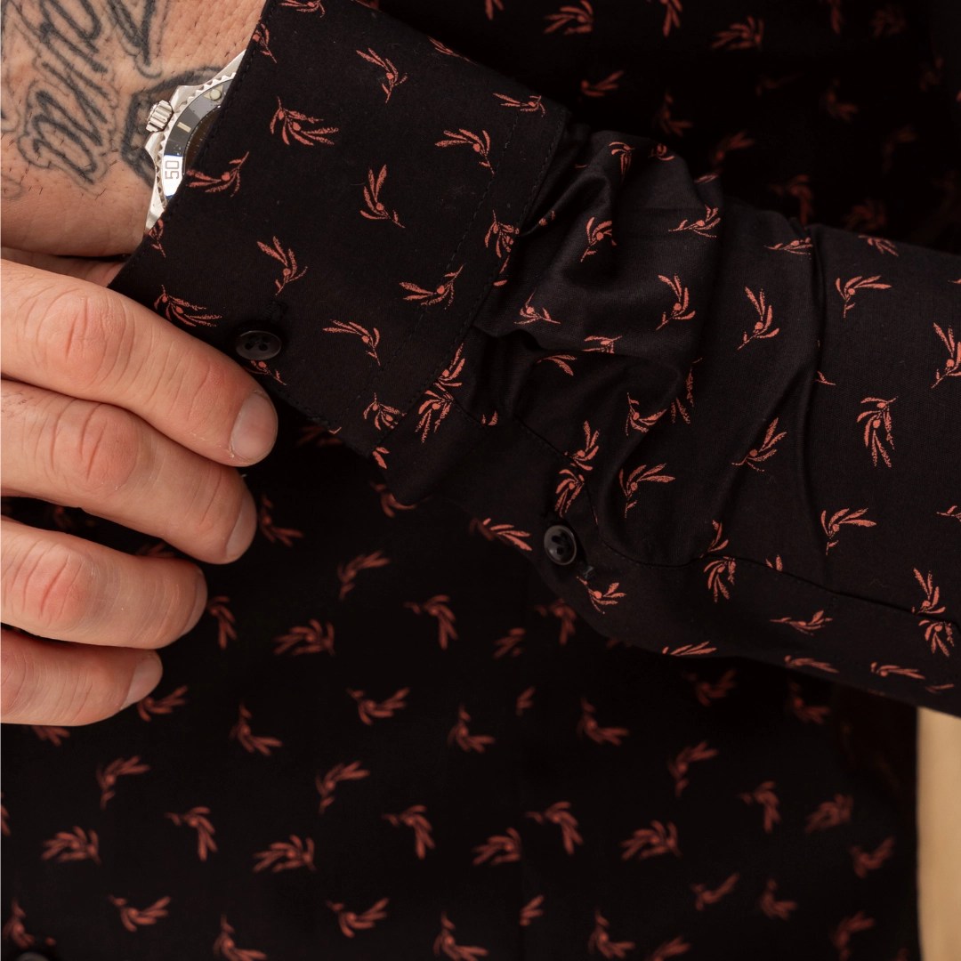 Apresentamos a elegante Camisa Algodão Fio 50 Casual na cor Preta com detalhes em Laranja, confeccionada com 100% algodão fio 50. Esta camisa proporciona um toque suave e respirável, ideal para o uso diário. Com um corte casual, ela oferece um visual moderno e descontraído, perfeito para diversas ocasiões.