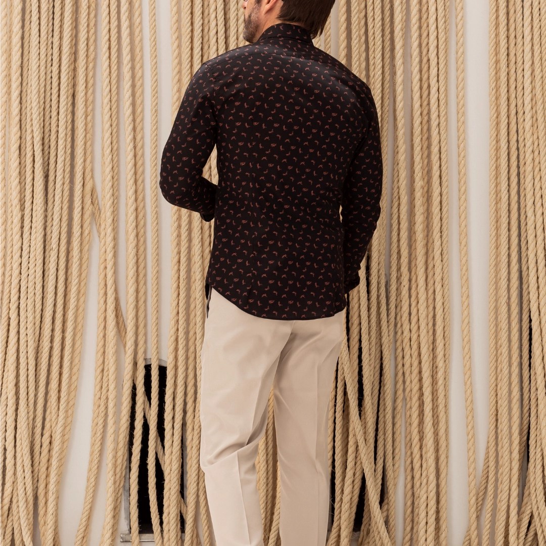 Transforme seu estilo com a Camisa Algodão Fio 50 Casual Preta com Detalhes em Laranja da Decinel e destaque-se com elegância em qualquer ocasião.